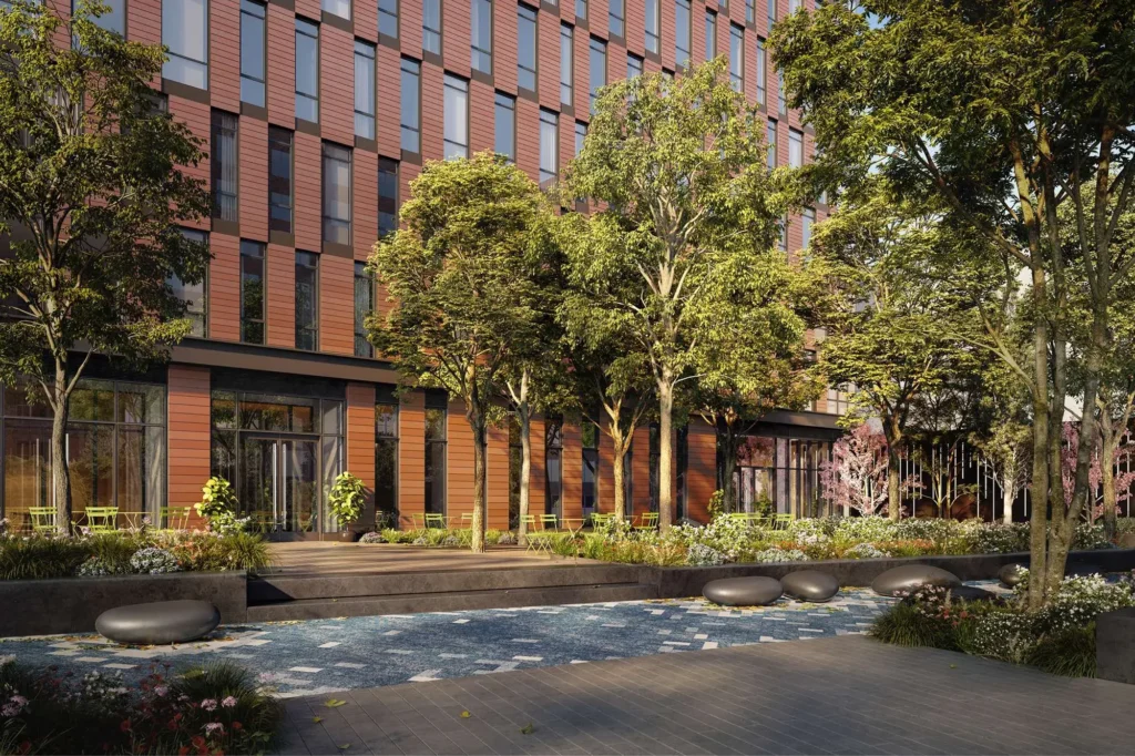 The plaza just outside Elevate Point offers an open, welcoming space that feels like an extension of the building itself. It’s a natural gathering spot where residents can step out, enjoy the city’s energy, or simply take a moment to relax in the fresh air.